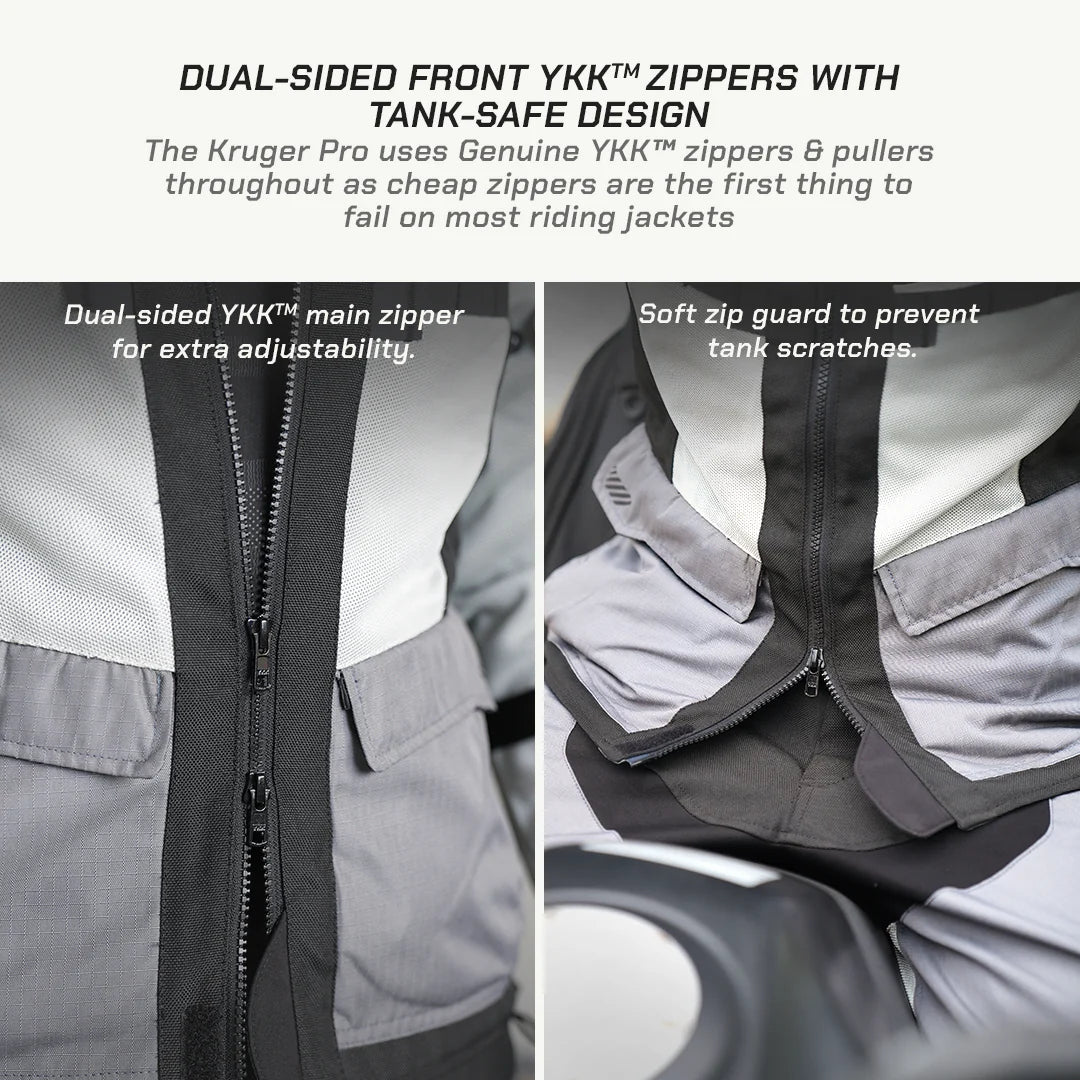 Kruger Pro Touring Jacket provides the ultimate Comfort & Protection for Hardcore Touring. Designed for serious motorcyclists, the Kruger Pro Touring Jacket combines rugged durability with all-day comfort for demanding long-distance rides—without the unnecessary bulk of traditional touring jackets.