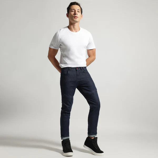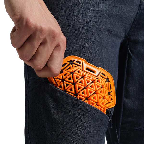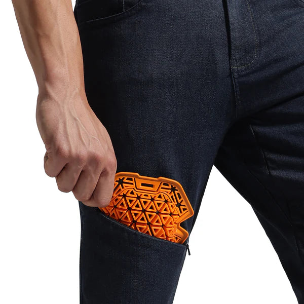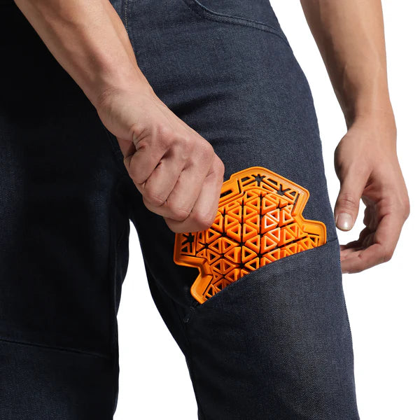 While the trusted strength of Cordura and High-Tenacity Polyamide (HTPA) yarn-blend gives tremendous abrasion resistance to the denim, the garment is triple-stitched with high Tex thread along major joins. This reinforces the structural integrity of the denim trousers when an abrasive contact with a rough surface tries to scrape and tear it apart, preventing the exposure of skin.