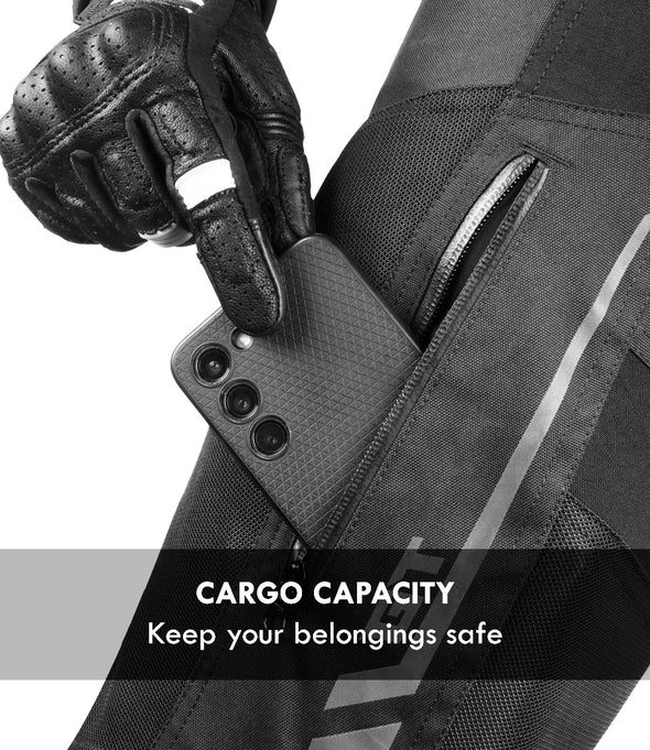 • KneeSlapTM: Rynox Exclusive knee armour positioning mechanism. KneeSlap gives you the freedom to adjust the height and position of the knee protectors while wearing the pants